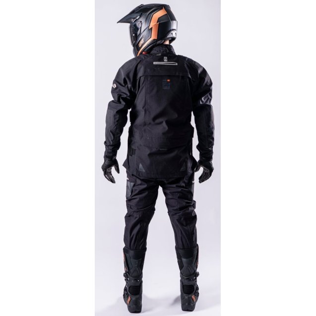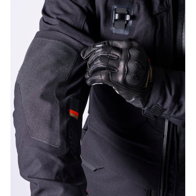 Мотокуртка ADV Rally 7.5 — універсальна adventure-куртка для їзди по дорозі та бездоріжжю з тришаровим ламінованим рипстопом HydraDri Max (30 000 мм / 30 000 г/м²) із чотирьохнаправленим стретчем та проклеєними швами. Сертифікована за стандартами EN 17092-3-2020 та EN 17092-4-2020, клас A. Знімна внутрішня куртка з протекторами CE рівень 1 дозволяє використовувати окремий захист тіла під зовнішньою оболонкою. Захист плечей, ліктів 3DF EN1621-1 рівень 1, спини 3DF EN1621-2 рівень 1, передбачено місце для нагрудного протектора. Панелі Deflextion на плечах та ліктях підвищують стійкість до стирання. Система BraceOn із торакальним вставним елементом дозволяє знімати куртку не знімаючи захист шиї Leatt 3.5 або 4.5. Кишеня для гідратора на 2 л із внутрішньою підтримуючою системою та водонепроникними каналами для шланга. Сім кишень на блискавках, включно з карго-кишенями з магнітними застібками та кишенями для рук із флісовою підкладкою. Три великі вентиляційні системи: повнорозмірна блискавка спереду, постійно відкрита вентиляція ззаду та дві підпахові блискавки YKK із системою shock cord. Усі зовнішні блискавки водонепроникні YKK. Регульований комір на еластичному шнурі з м'якою підкладкою. Покриття DWR C0/20 без PFAS, матеріали сертифіковані Bluesign.
