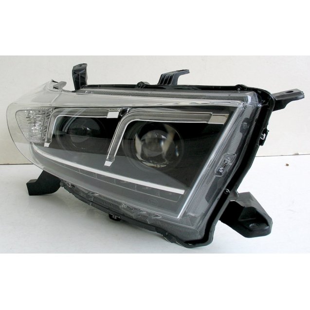 Ксеноновая линза с ближнего и дальнего света. Светодиодные габаритные огни и функция полноценных дневных ходовых огней ДХО. . Купить переднюю альтернативную ксеноновую оптику для Toyota Highlander 2012 .